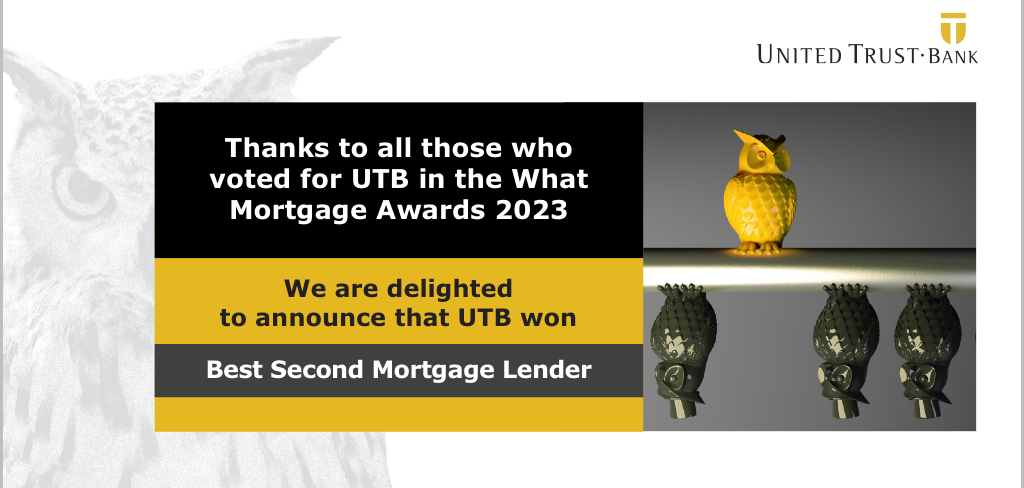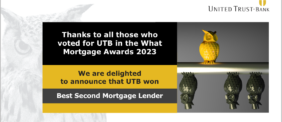 United Trust Bank (UTB) has been named ‘Best Second Mortgage Lender’ in the What Mortgage Awards 2023, the third time UTB Mortgages has won the award. The Bank was also awarded Highly Commended for the ‘Best Short-Term Lender’ category.